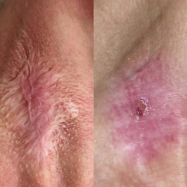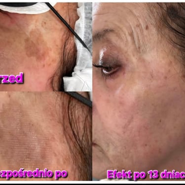 zdjęcia przed i po zabiegu z użyciem lasera tulowego. Efekty pozabiegowe są uzależnione od wielu czynników i mogą być różne u różnych pacjentów, nawet z podobnym problemem skórnym.